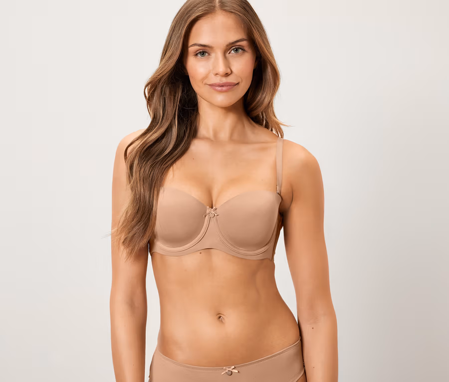 - Možnosti nosenia: bez ramienok, s klasickými ramienkami, ramienkami okolo krku, vzadu prekríženými ramienkami