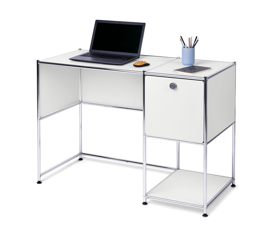 Kovový písací stôl »CN3« s výklopnými dvierkami, biely