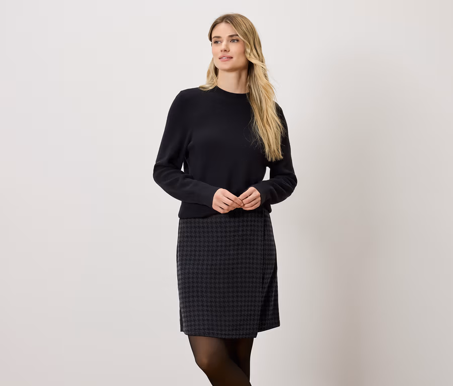 Sukňa z teplákoviny so žakárovým vzorom kohútej stopy