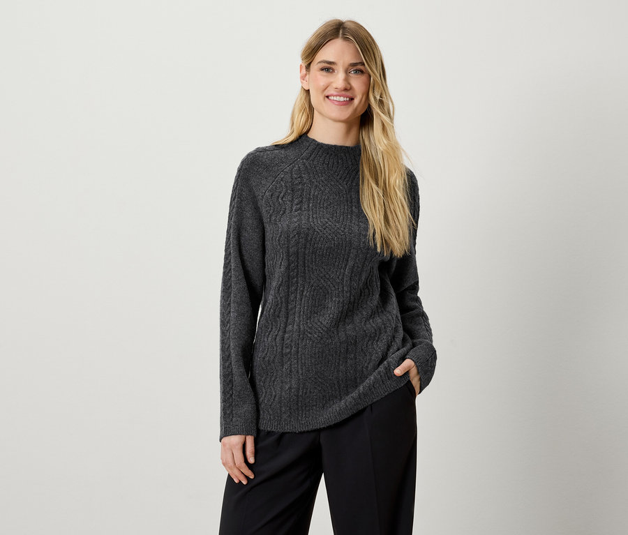 Pulóver z hrubého úpletu s vrkočovým vzorom, sivý