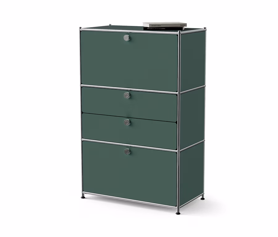 Kovová komoda »CN3« s 2 výklopnými priečinkami a 2 zásuvkami, olivovo zelená
