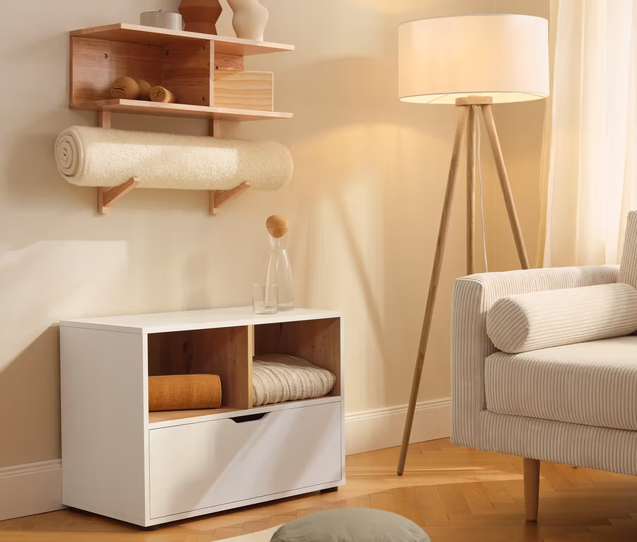 - Komoda s otvorenými úložnými priehradkami a so zásuvkou