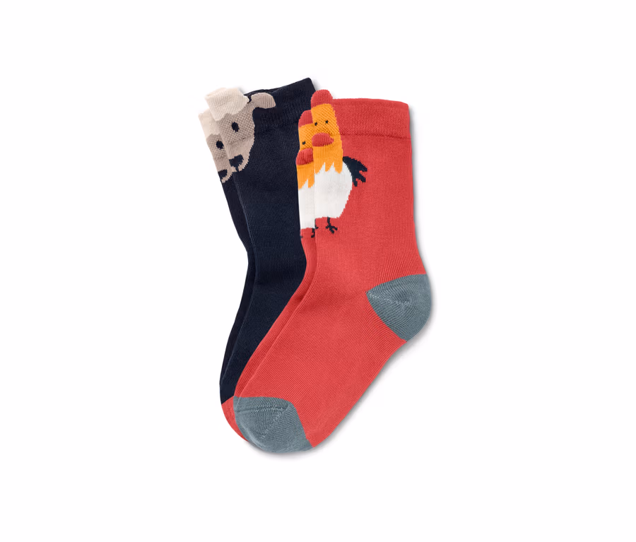- 1x tmavomodré s viacfarebným vpletaným vzorom hlavy ovečky, 1x červené s viacfarebným vpletaným vzorom sliepky