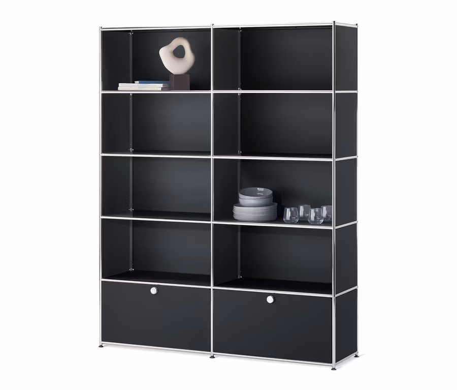 Regál »CN3« s 2 výklopnými dvierkami, čierny