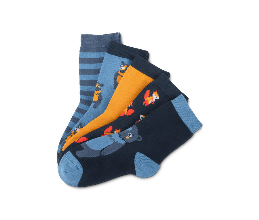Ponožky, 5 párov, s motívmi medveďa a líšky