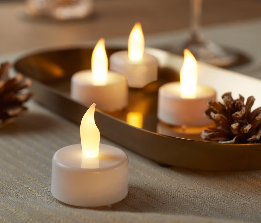 Čajové sviečky s LED, 4 ks, biele