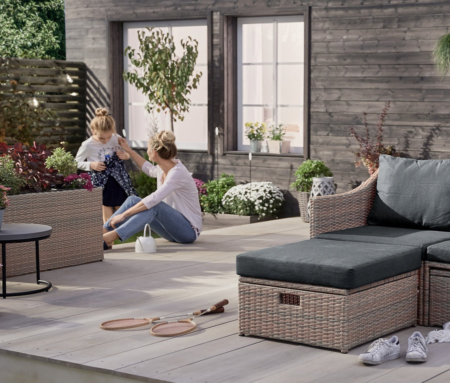 - Flexibilné usporiadanie: dá sa používať ako 3-miestna pohovka, rohová pohovka alebo rozkladacia pohovka, v záhrade alebo na terase