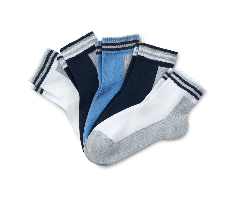 S týmito piatimi pármi športových krátkych ponožiek môžu deti pri športe podať maximálny výkon. Majú vnútornú stranu z mäkkého froté a vďaka vysokému podielu bavlny sú mimoriadne príjemné na telo. Široký pohodlný lem dobre sedí a nezarezáva sa a obzvlášť plochý šev v oblasti prstov takmer necítiť. Špička a päta ponožiek sú zosilnené. Detské ponožky sú vyrobené s biobavlnou a elastan zaisťuje, že dobre držia tvar, perfektne sedia a výborne sa nosia.