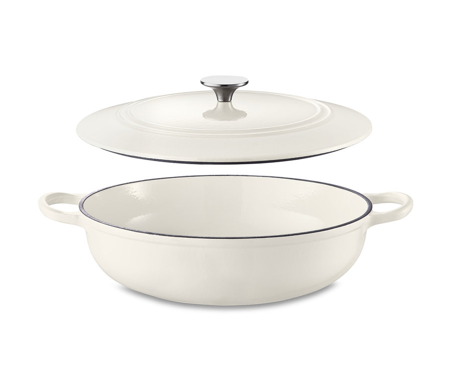 Dusené pokrmy ako talianske Ossobuco vždy padnú vhod – a so správnym vybavením sa vždy aj vydaria. Tento pekáč a panvica v jednom je na to ako stvorený: je vyrobený zo smaltovanej liatiny a pokrievka má úchyt z kvalitnej ušľachtilej ocele. Je vhodný nielen na všetky druhy sporákov vrátane indukčných, ale aj na tie najvyššie teploty v rúre na pečenie.
