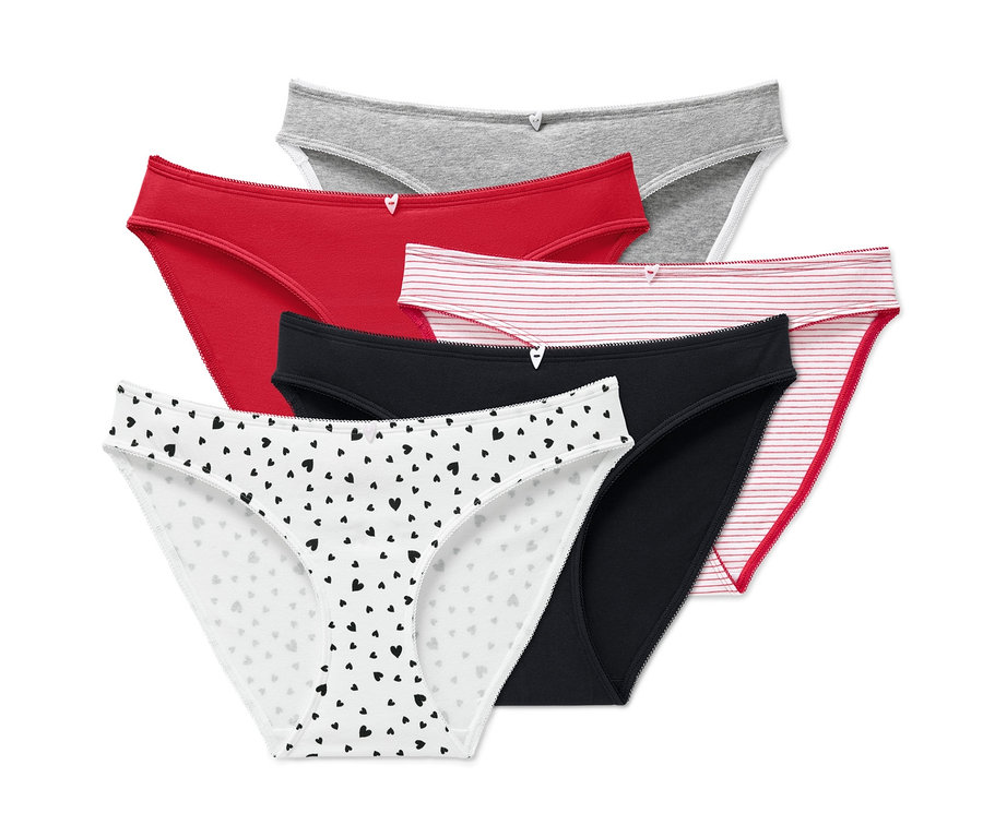 Úžasne pohodlná spodná bielizeň s vysokým podielom biobavlny: Tieto nohavičky v balení po päť kusov z príjemne mäkkého jednoduchého džerseja sú mimoriadne pohodlné na nosenie a sú vyhotovené s ozdobným prvkom. Okrem toho majú nohavičky bavlnený klin a elastický ozdobný okraj. Bielizeň vďaka elastanu dobre drží tvar, perfektne sedí a výborne sa nosí.