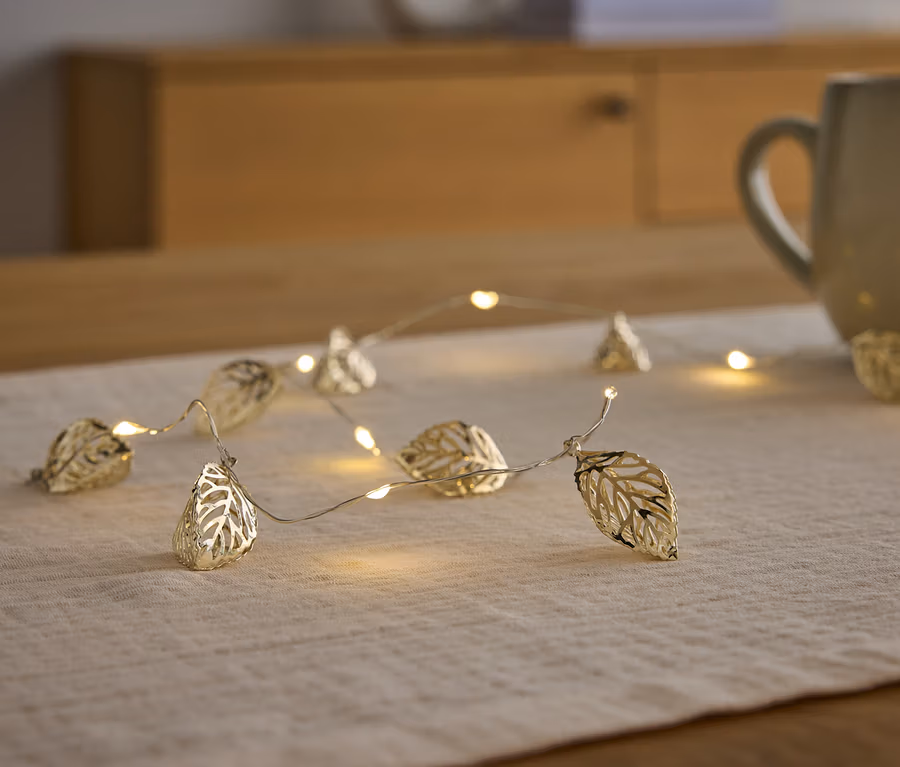 - 10 pevne integrovaných mikro LED a 10 zlatých 3D listov – teplé biele svetlo