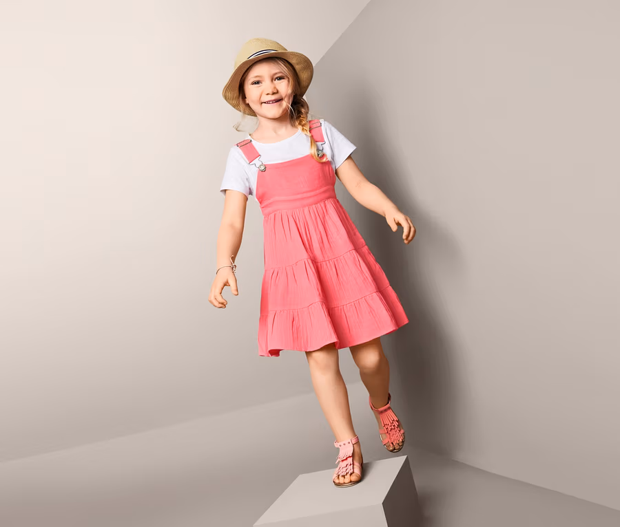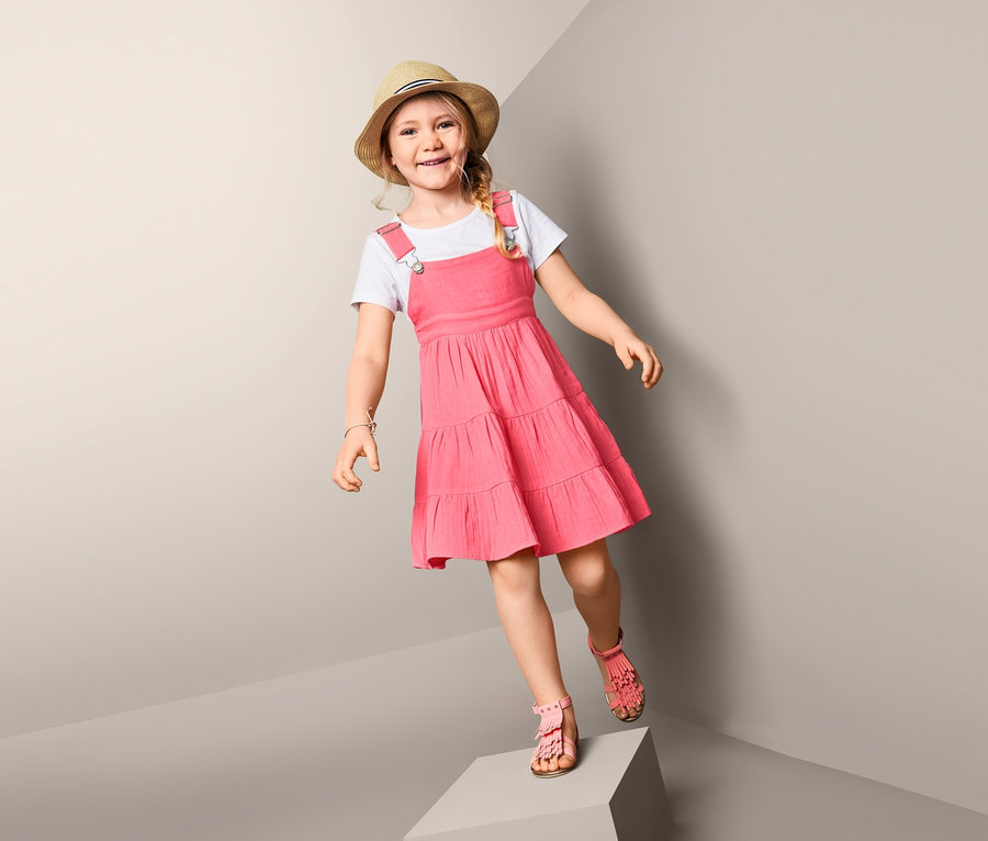 Detská móda, ktorá baví: tieto šaty v žiarivej farbe vnesú do šatníka veselé akcenty. Skladajú sa z čistej biobavlny a sú dokonalým modelom na leto, ktorý je za každých okolností príjemne mäkký na telo. Šaty sa navyše dajú prispôsobiť podľa potreby: na trakoch stačí nastaviť vhodnú dĺžku.