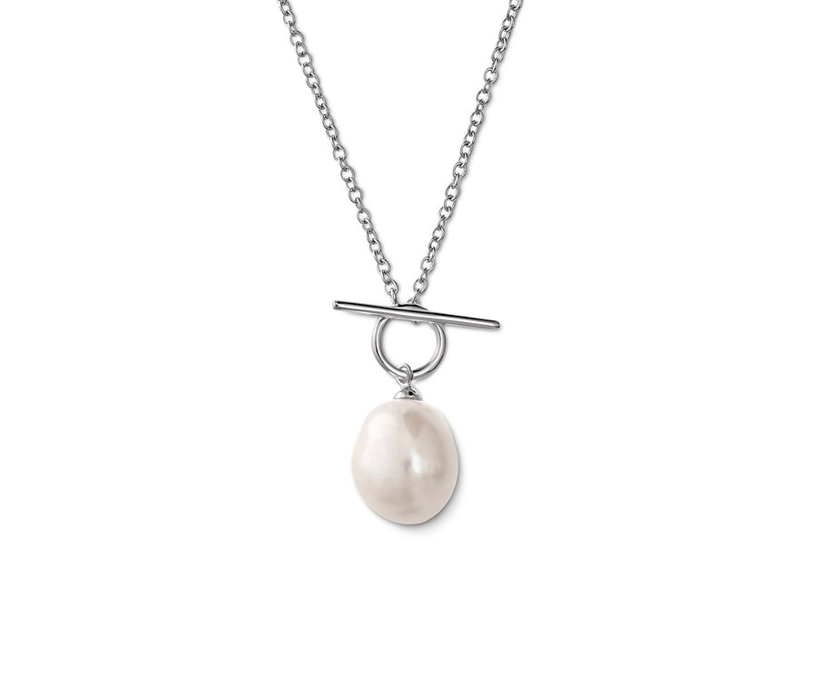 Náhrdelník, striebro 925/1000, ródiované, so sladkovodnou perlou z chovu