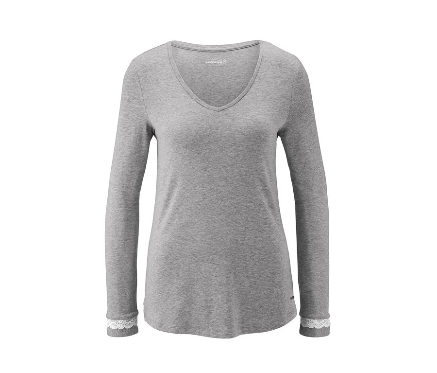 - Vrchný diel s výstrihom do V a jemným čipkovým lemom na koncoch rukávov