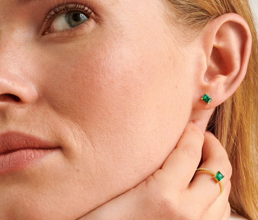 Prstienok zo zlata s rýdzosťou 585 zdobený zelenou kubickou zirkóniou