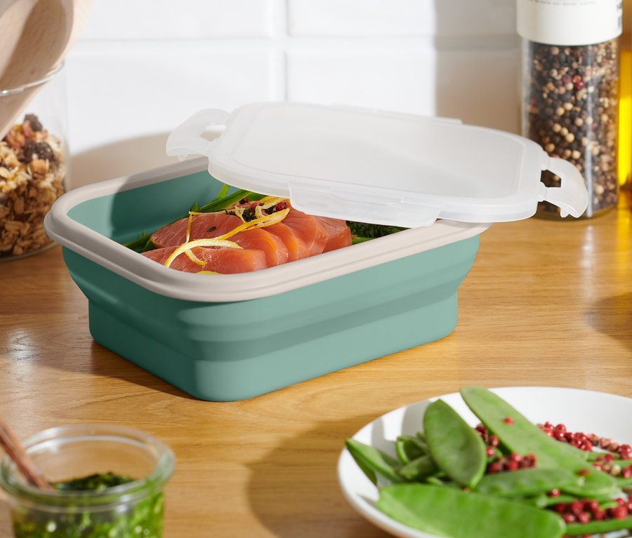 • Veko so silikónovým tesnením a zaklapávacími uzávermi – s ochranou proti vytekaniu a ideálne na cesty
