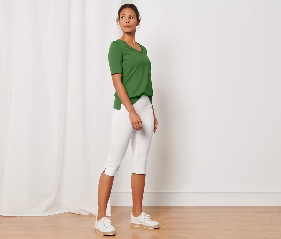 Trojštvrťové elastické nohavice, biele