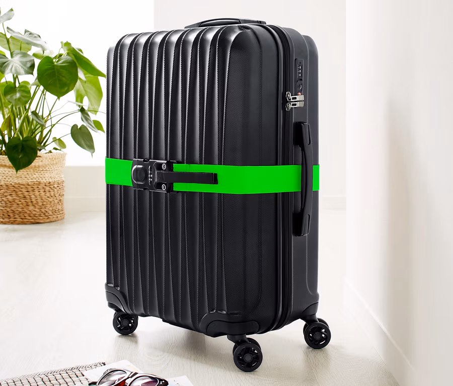 Dokonalý doplnok na prípravy na dovolenku a cestovanie bez stresu: Tento popruh na kufor 3 v 1 so zámkom s číselným kódom a zabudovanou váhou pripraví batožinu na odlet. Má nastaviteľnú dĺžku a dá sa natiahnuť okolo kufra s obvodom až do 185 centimetrov.