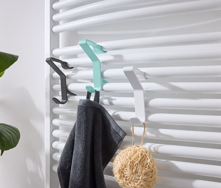 - Jednoduché upevnenie – háčiky sa jednoducho zavesia medzi tyče kúpeľňových radiátorov