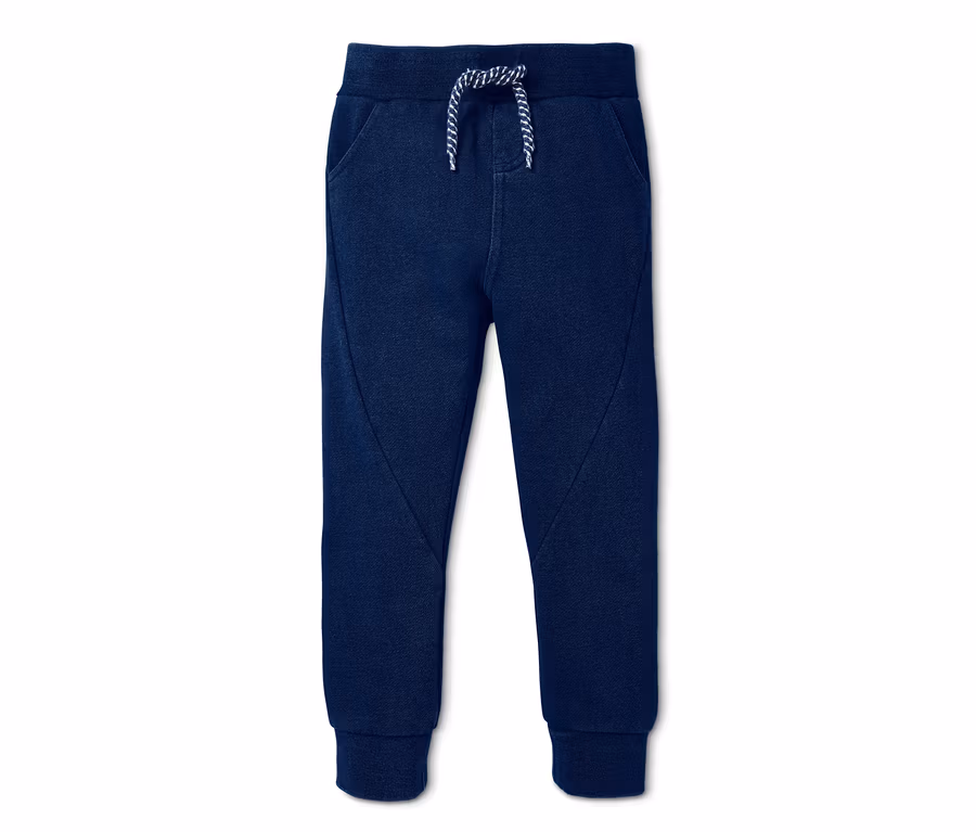 Tieto nohavice sú spojením pohodlia teplákov a ležérneho indigového vzhľadu džínsov. Sú vyrobené s biobavlnou a majú pohodlný, široký a elastický rebrovaný lem s ozdobnou sťahovacou šnúrkou. Nohavice sú vybavené dvomi bočnými vreckami a jedným zadným vreckom, šikmé bočné švy im dodávajú osobitý vzhľad.