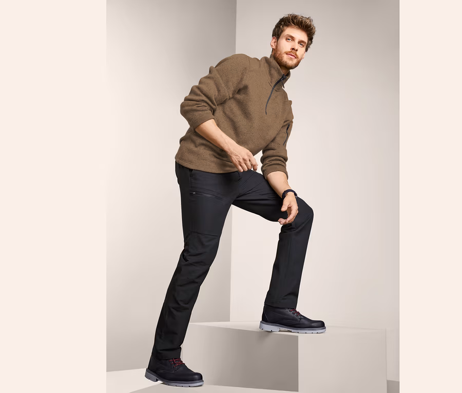 - Pohodlné pánske nohavice s 2 bočnými vreckami a 1 vreckom na zips na pravom stehne
