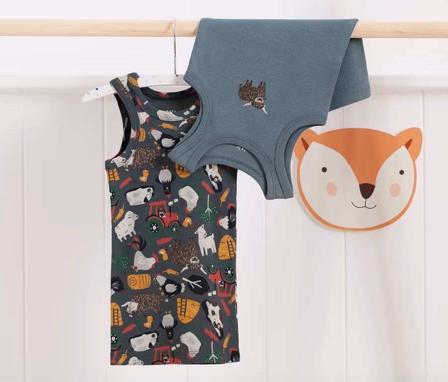 - 1x bridlicovomodré s celoplošnou potlačou s motívom farmy, 1x dymovomodré s potlačou