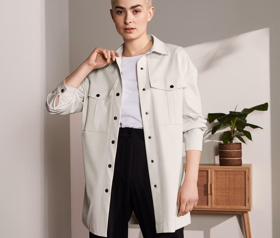 - Dlhá košeľová bunda z tkaného materiálu