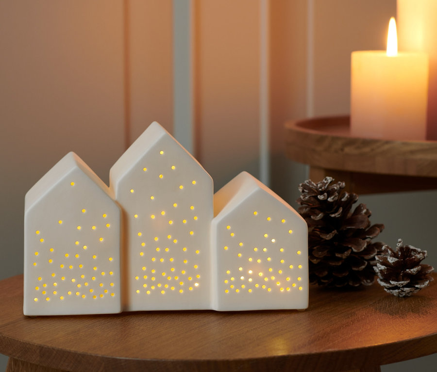 Domčeky výška 1x cca 9 cm, 1x cca 11 cm, 1x cca 13 cm, hĺbka vždy cca 8 cm
