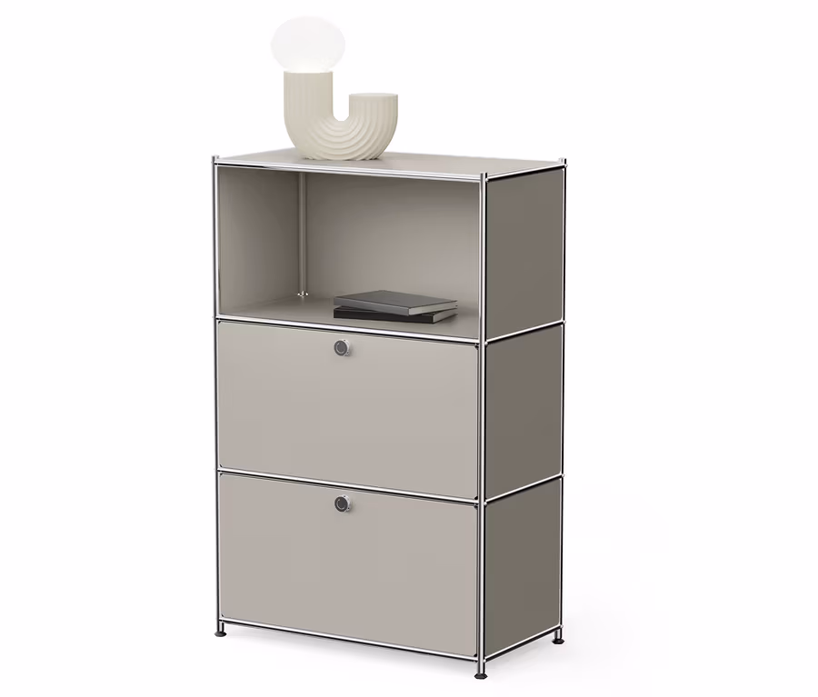 Komoda Kovová komoda »CN3« s výklopnými priečinkami, svetlosivá