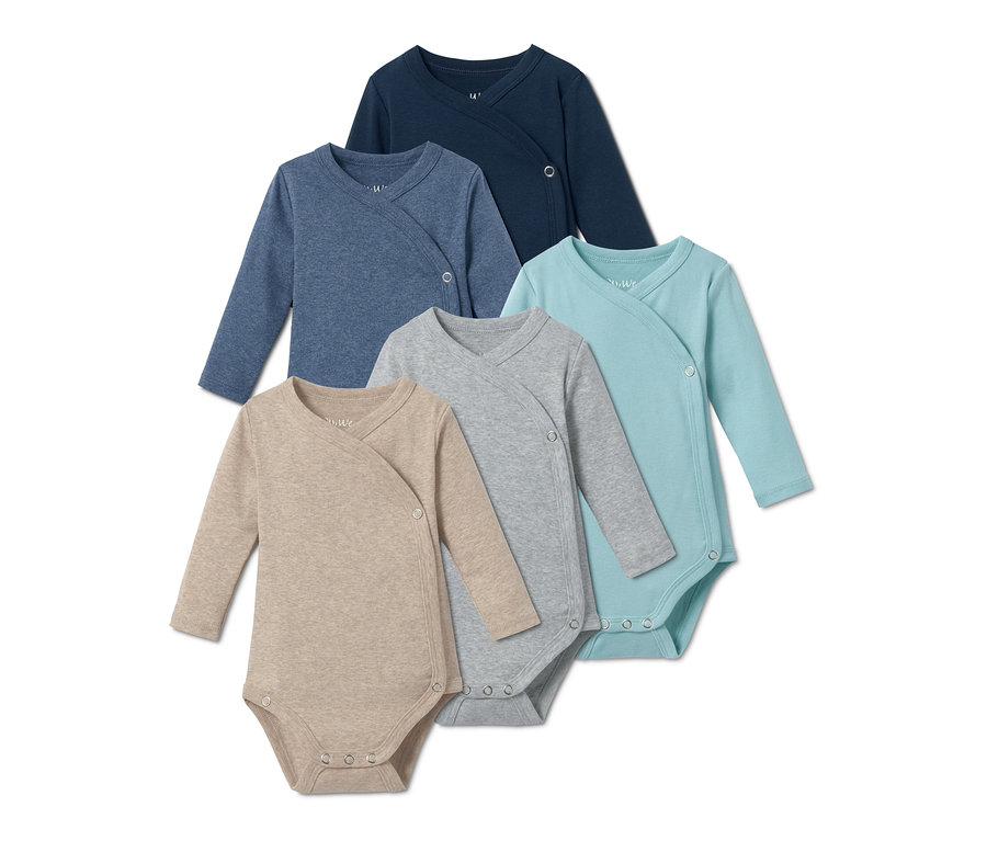 Bavlnené body s dlhým rukávom, 5 ks