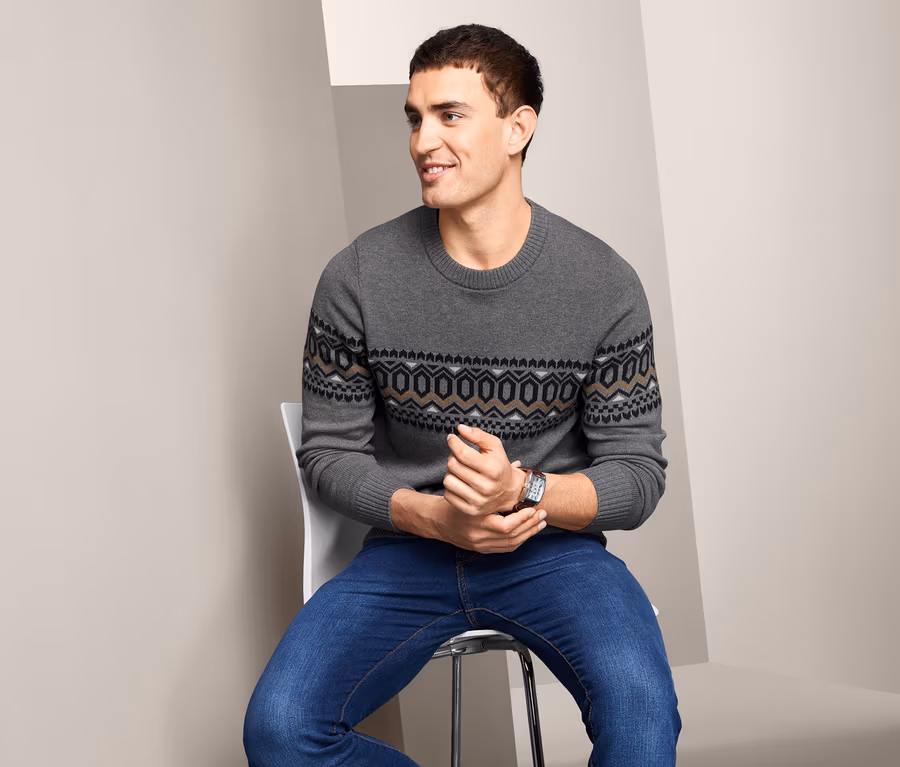 - Pánsky pulóver s módnym nórskym vzorom – univerzálny vrchný diel na jeseň a zimu