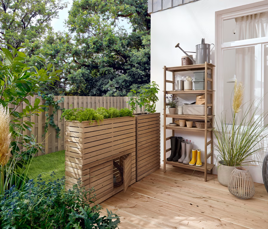 Oddeľovacia stena s kvetináčmi »Tinus« s odkladacím priestorom