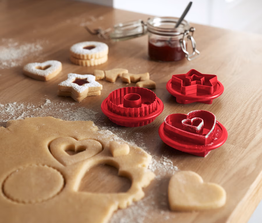 • 1 strana na vykrajovanie sušienok bez motívu, 1 strana na sušienky s motívom – po upečení možno jednoducho naplniť marmeládou