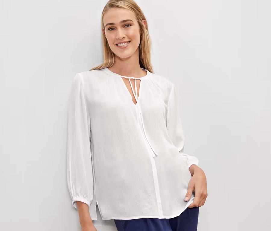 - Tunikový výstrih s jemným nariasením a šnúrkou na zaväzovanie