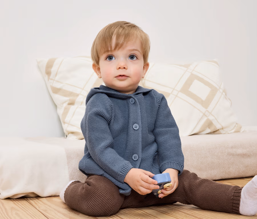 Detský pletený svetrík s kapucňou
