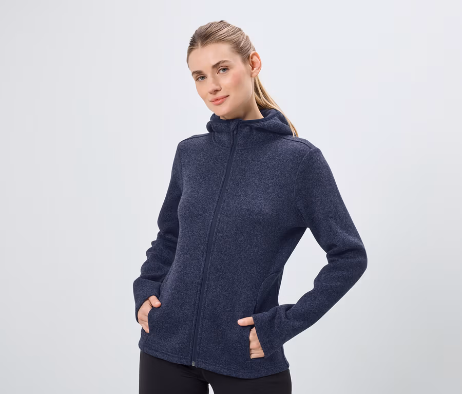 Dámska bunda z pleteného flísu, tmavomodrá