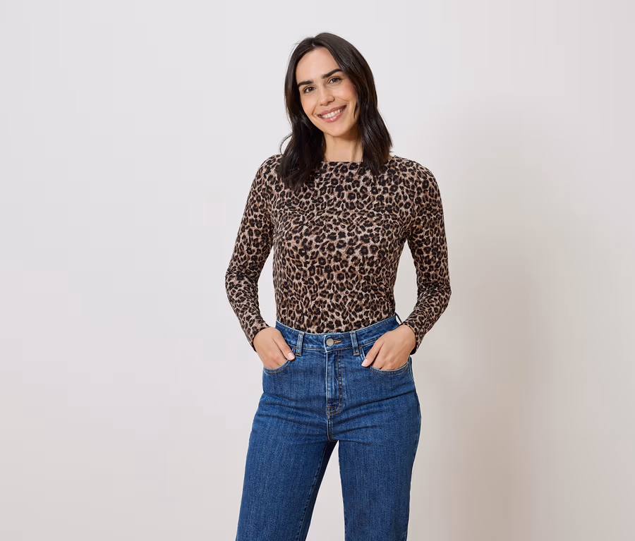 Tričko s dlhým rukávom, béžové s hnedo-čiernou celoplošnou leoparďou potlačou