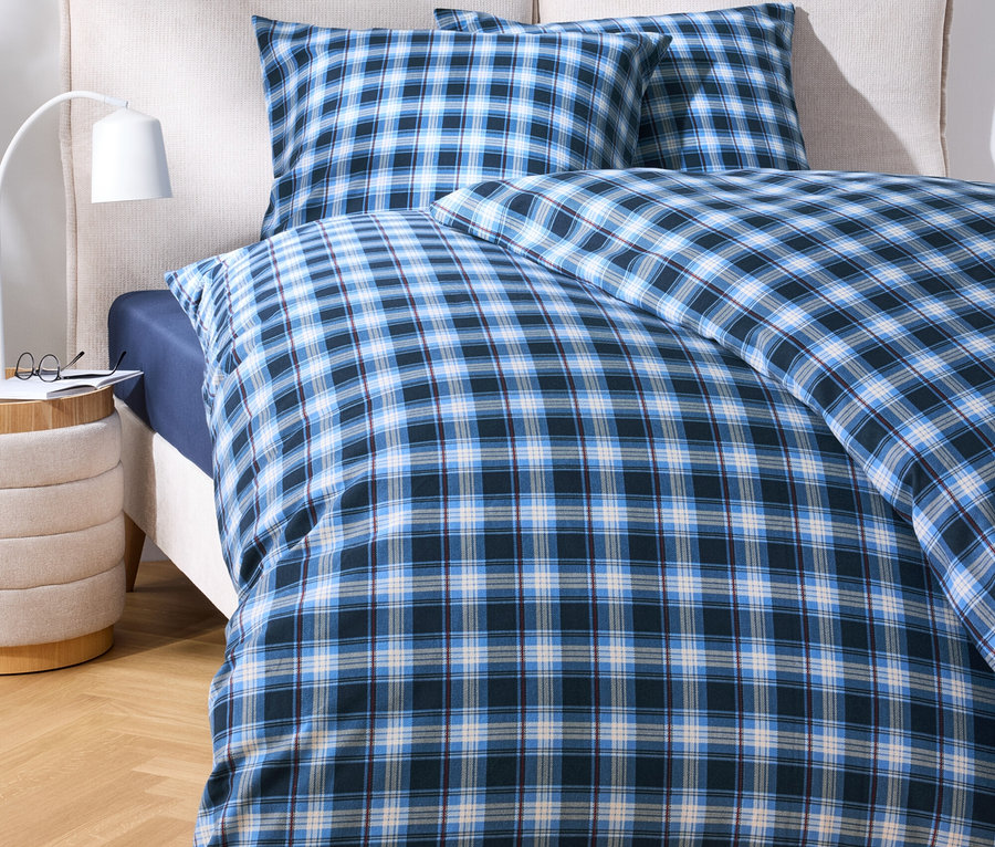 Posteľná bielizeň z česanej bavlny, modré káro, štandardná veľkosť