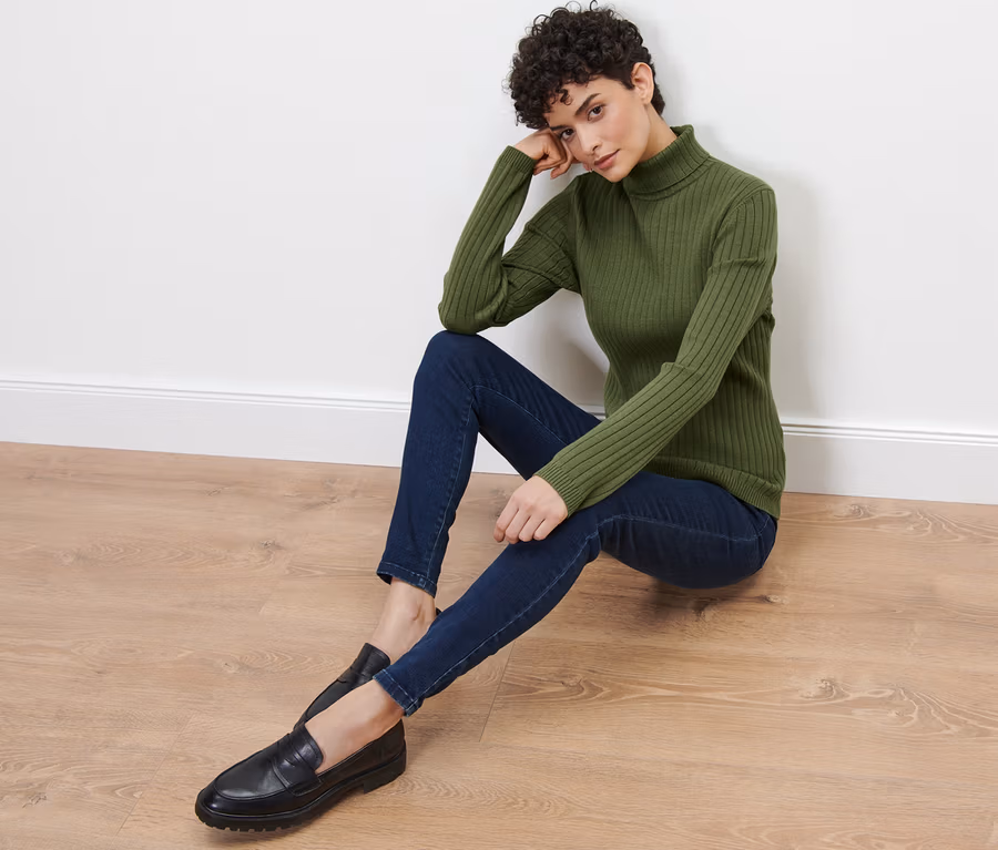 Rebrovaný pulóver s rolákovým golierom