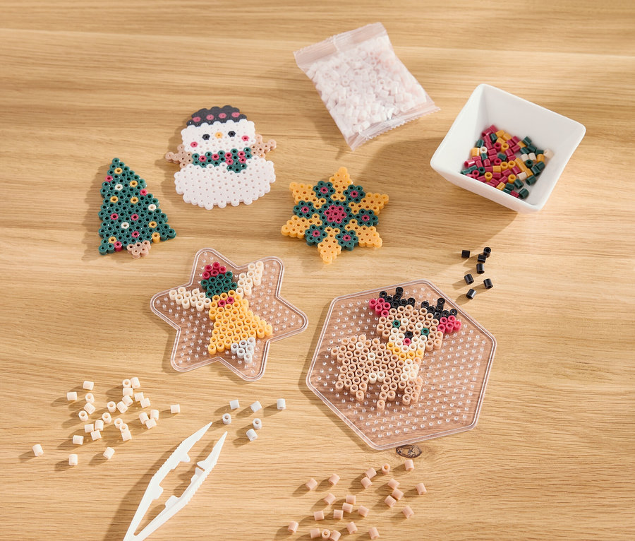 - Vrátane 2 000 korálok v 8 rôznych farbách (vždy po 250), pinzety, šesťhrannej základne, hviezdicovej základne, predlohy motívu DIN A4 a návodu na použitie