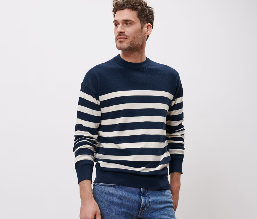Pásiky v kombinácii námorníckej modrej a sivobielej