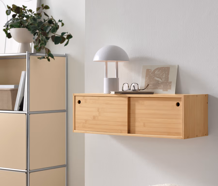 Nástenný regál s posuvnými dvierkami