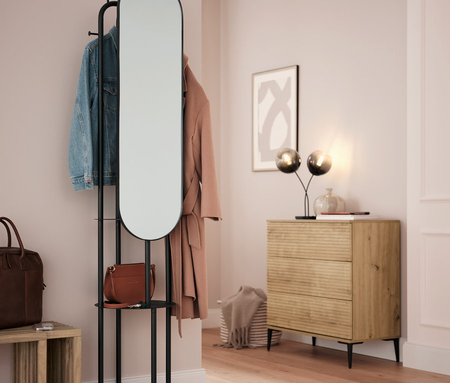 Stojaca vešiaková stena s veľkým zrkadlom