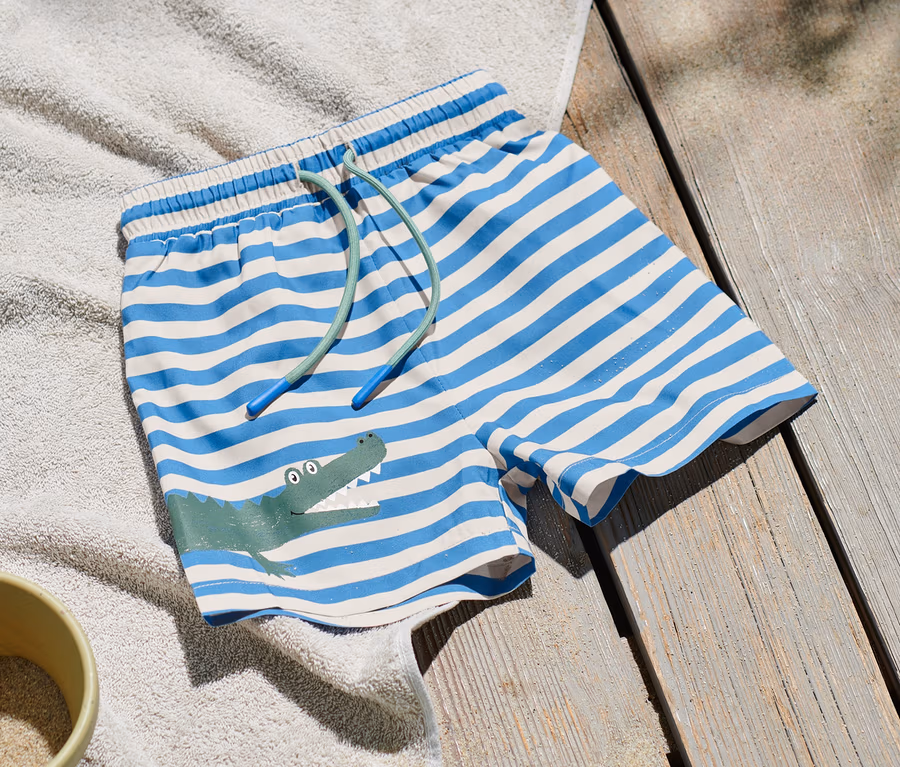- Prúžkované v kombinácii modrej a béžovej s krokodíľou potlačou