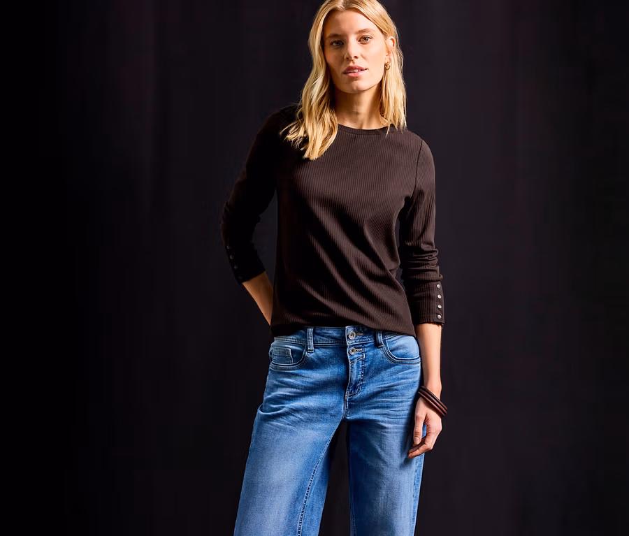 Street One tričko z rebrovaného úpletu, hnedé