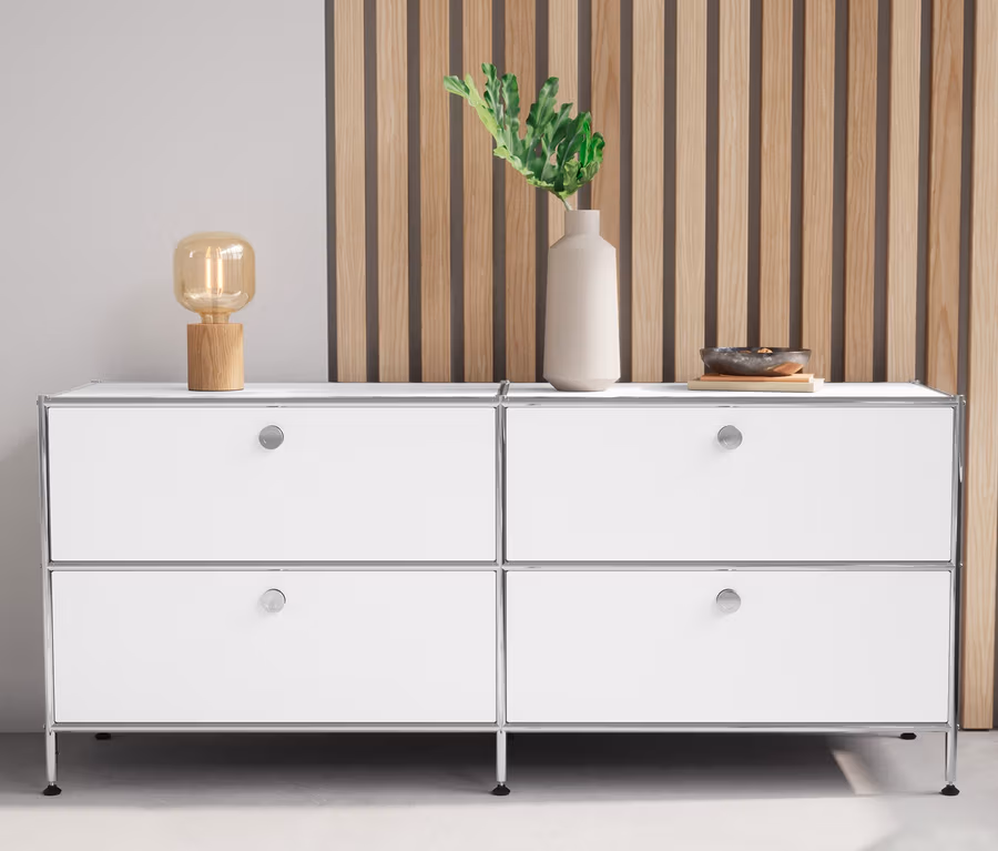 Kovová nízka skrinka »CN3« so 4 zásuvkami, biela