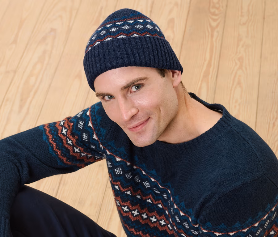 - Tmavomodrá s nórskym vzorom v kombinácii modrej, červenej a krémovej