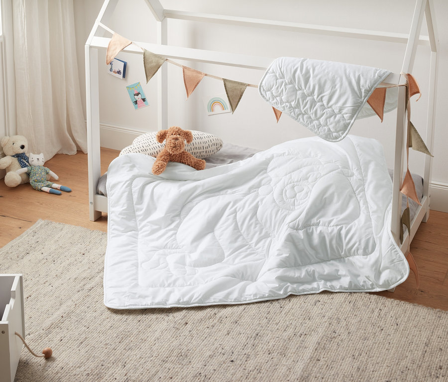 - Detská prešívaná prikrývka a vankúš s poťahom z čistej mäkkej biobavlny
