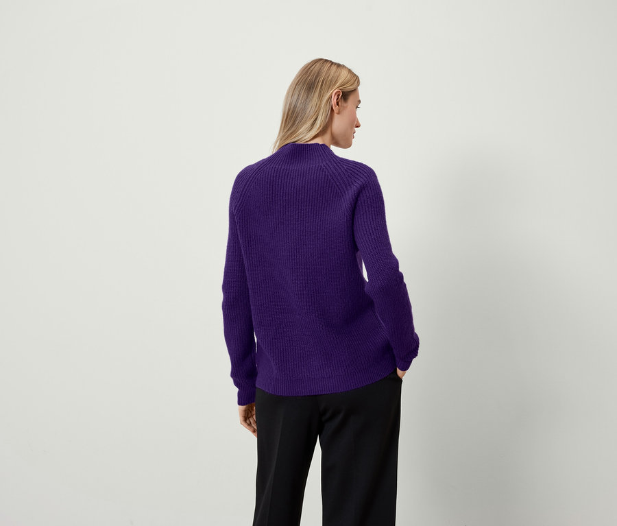 Pulóver z hrubej pleteniny so stojačikom, fialový