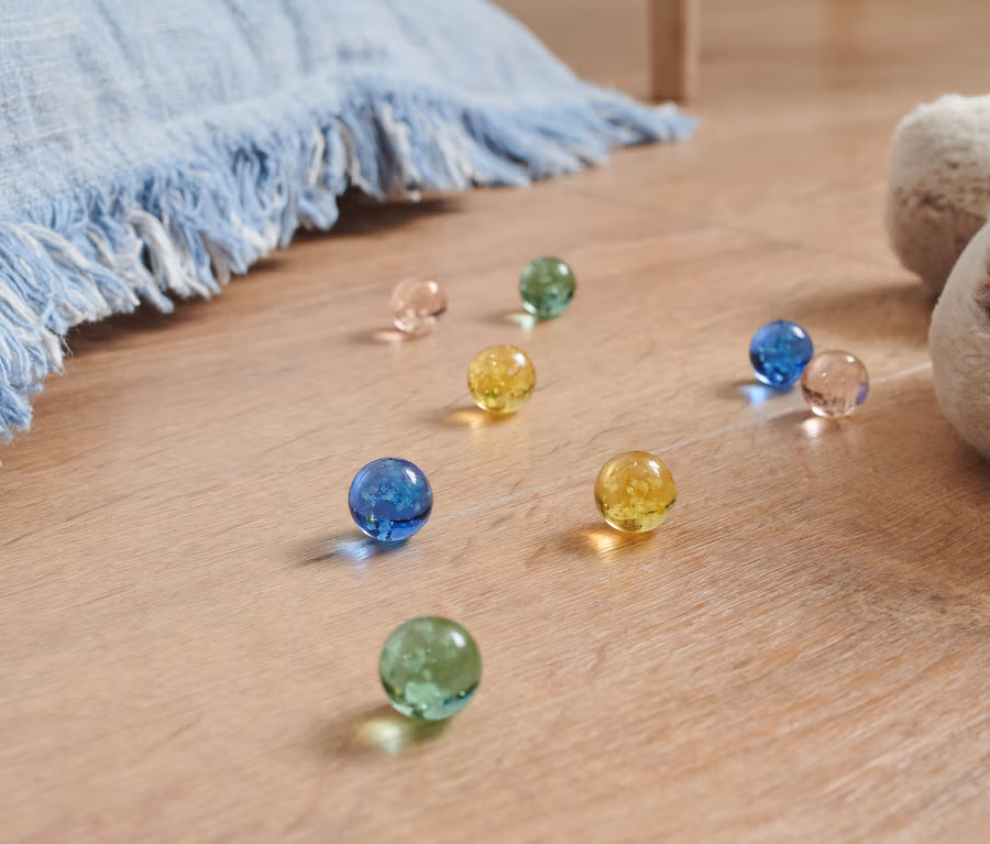 - 8 sklenených guľôčok v 4 rôznych farbách